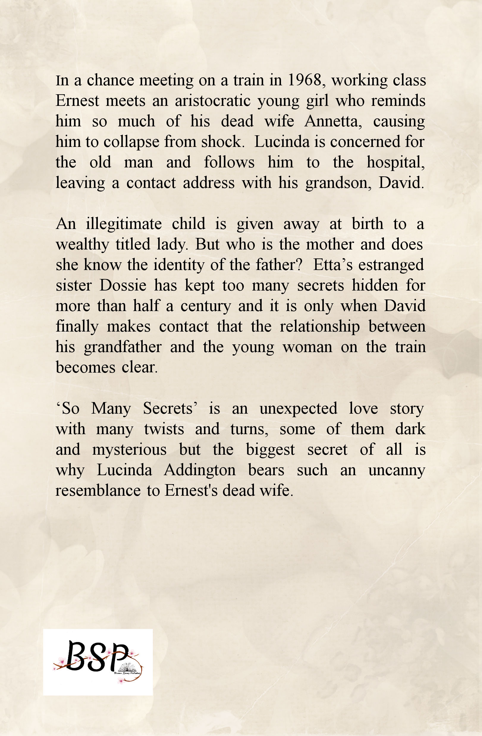 ‘So Many Secrets’ is an unexpected love story with many twists and turns, some of them dark and mysterious but the biggest secret of all is why Lucinda Addington bears such an uncanny resemblance to Ernest’s dead wife.