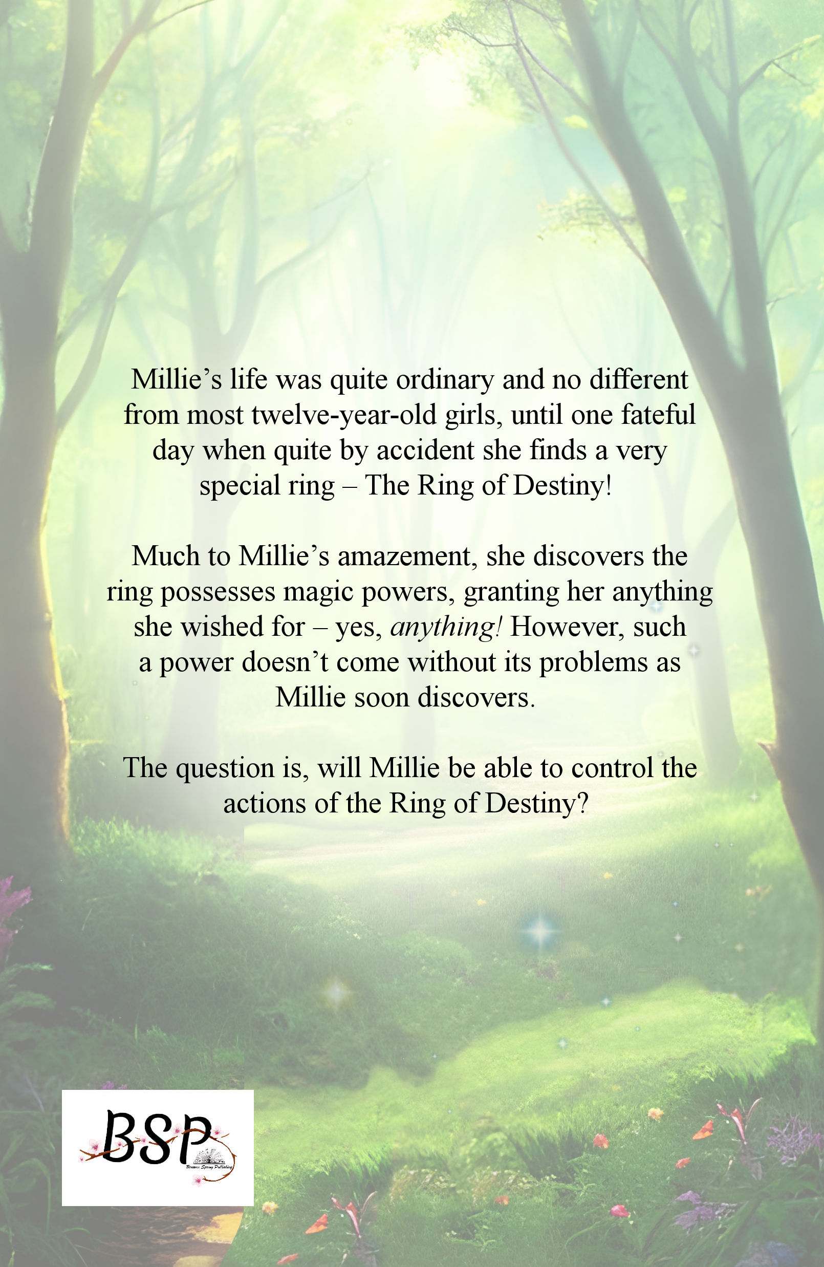 Millie’s life was quite ordinary and no different from most twelve-year-old girls, until one fateful day when quite by accident she finds a very special ring – The Ring of Destiny!