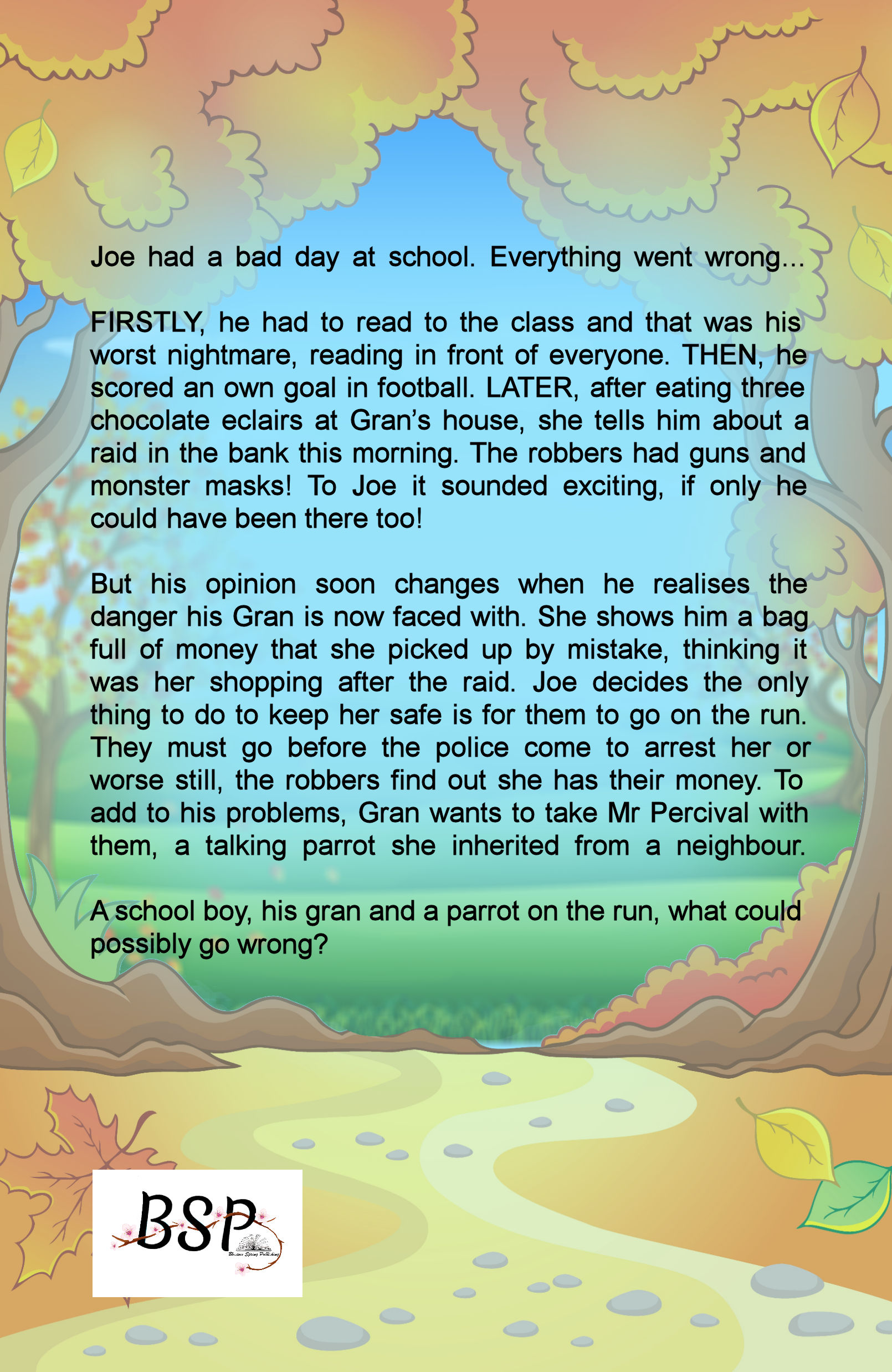 But his opinion soon changes when he realises the danger his Gran is now faced with. She shows him a bag full of money that she picked up by mistake, thinking it was her shopping after the raid. Joe decides the only thing to do to keep her safe is for them to go on the run. They must go before the police come to arrest her or worse still, the robbers find out she has their money. To add to his problems, Gran wants to take Mr Percival with them, a talking parrot she inherited from a neighbour.
