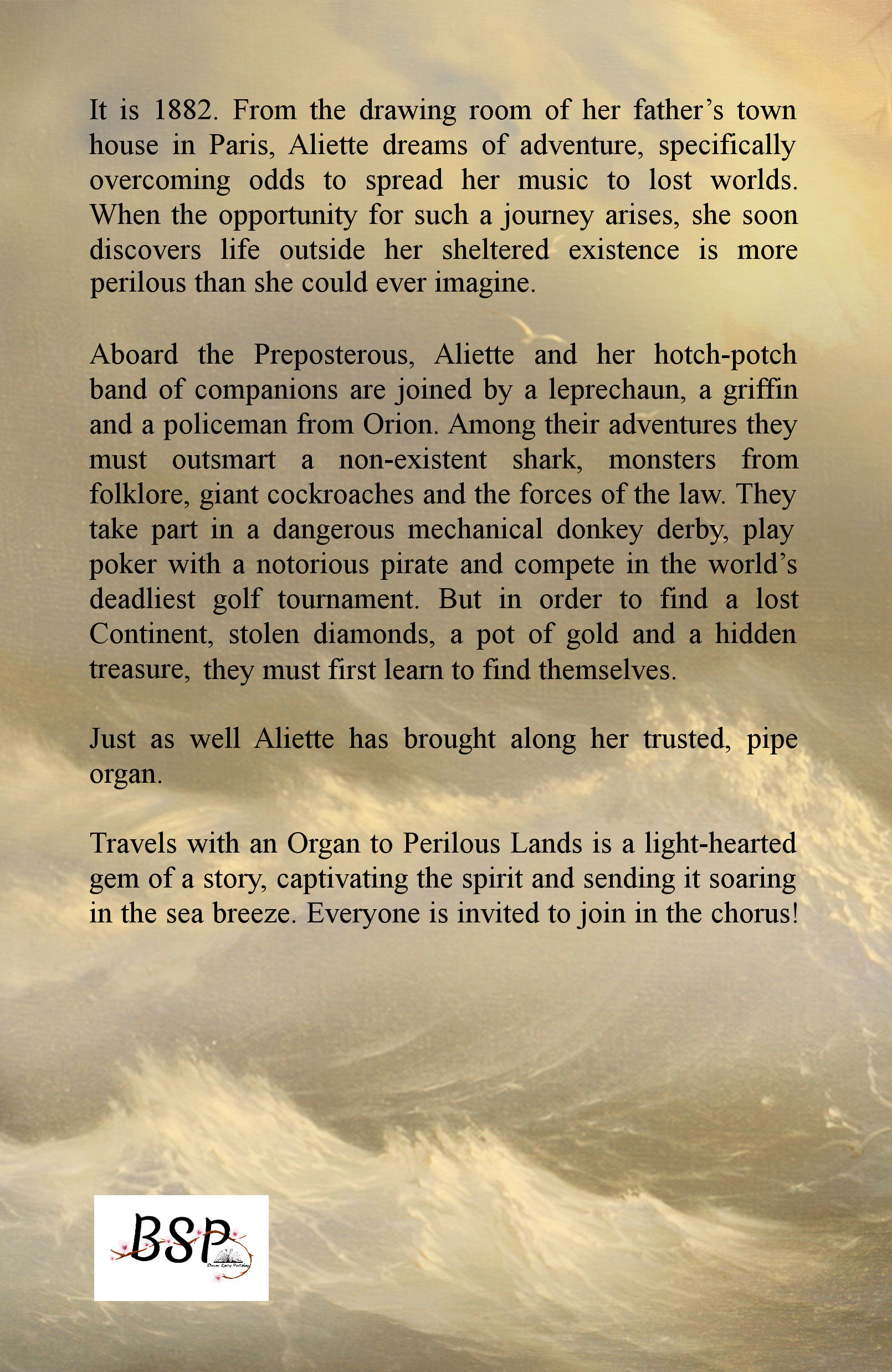 Travels with an Organ to Perilous Lands is a light-hearted gem of a story, captivating the spirit and sending it soaring in the sea breeze. Everyone is invited to join in the chorus!
